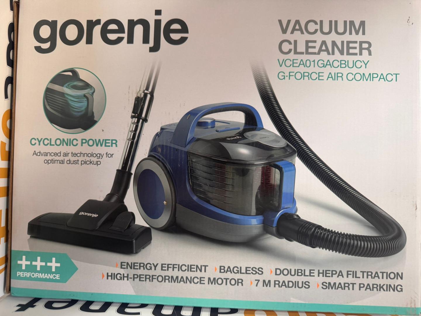 Aspirator fara sac Gorenje VCEA01GACBUCY, aspirare uscata, filtru Hepa, 2.2 litri, 800 W, functie SoftStart, albastru