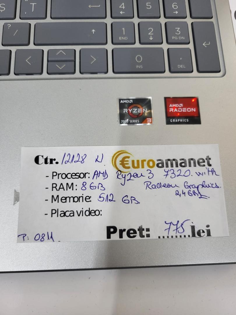 Laptop HP 15-fc0029nq, AMD Ryzen 3 7320U, 8GB, SSD 512GB, AMD Radeon Graphics, , Argintiu
