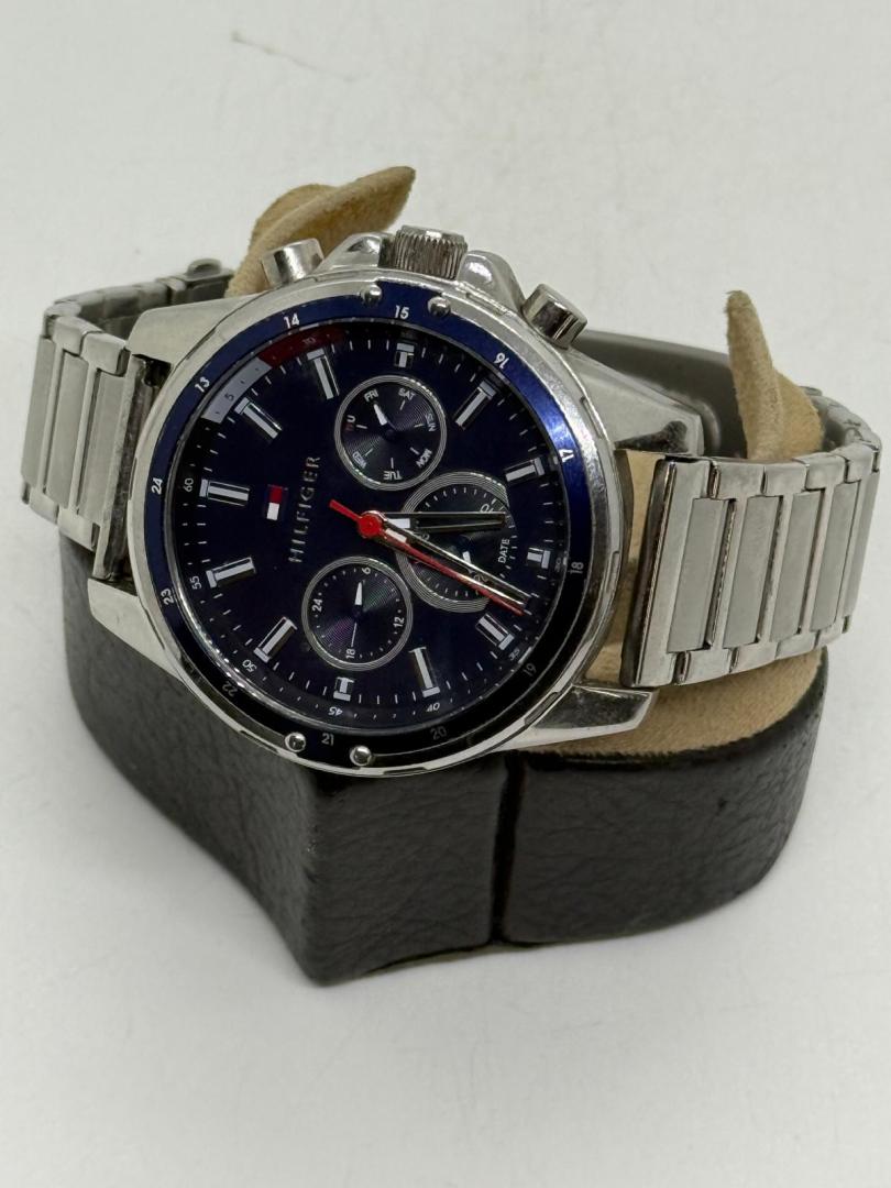| Detalii | Cod produs: 1791788; Mecanism: Quartz; Rezistenta la apa: 30 m; Dimensiune: 45 mm; Forma: Rotunda; Material: Otel inoxidabil; Culoare: Argintiu; Latime la telescop: 21 mm; Material: Otel inoxidabil; Culoare: Argintiu; Culoare: Albastru; Afisaj: Analogic; Geam: Cristal mineral; Indicatori: Index; Functii: Hms, Data, Zi din saptamana, Indicator 12/24 ore |