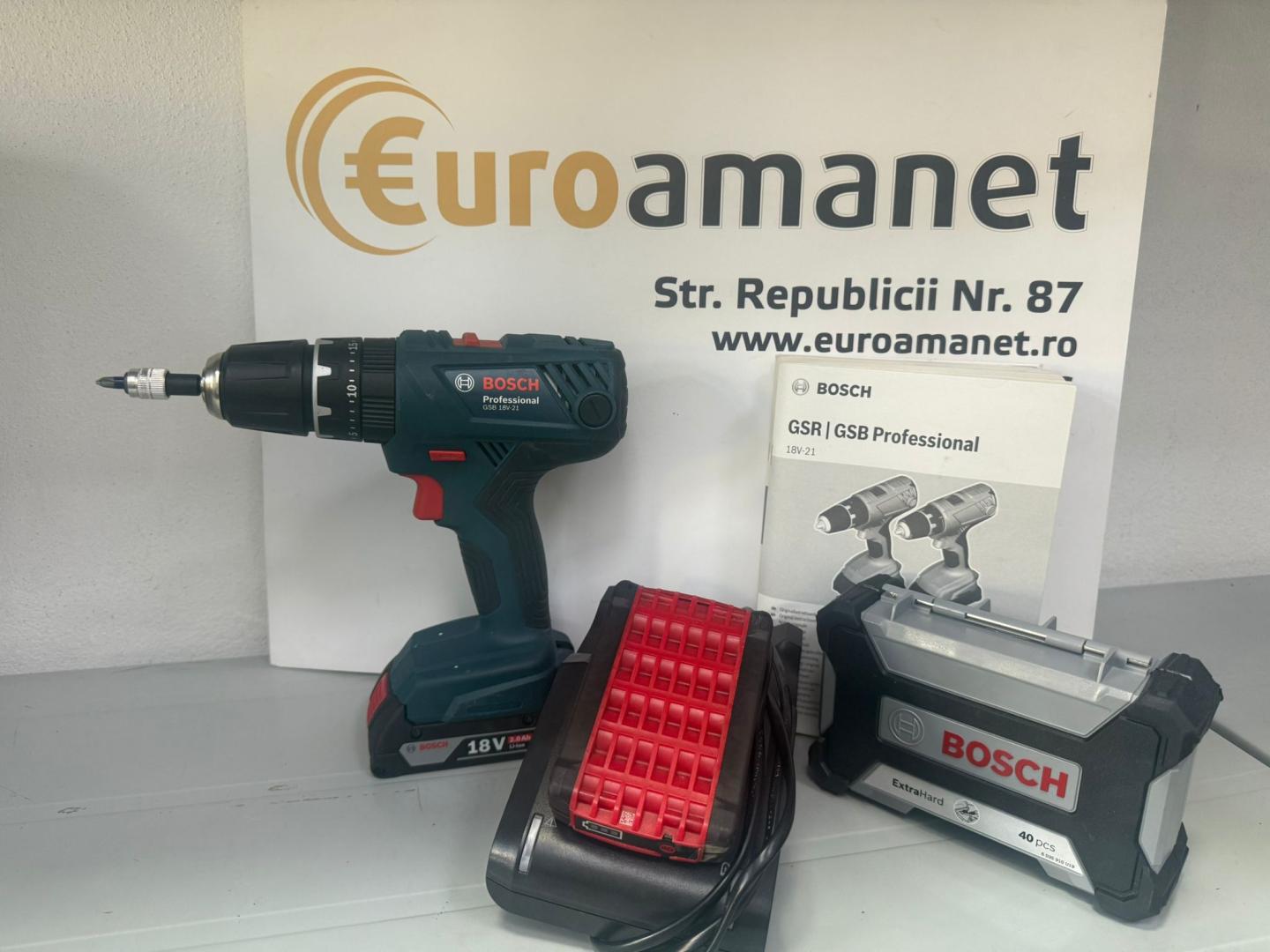 Masina De Gaurit Combinata Cu Acumulator Bosch Professional 18V System Gsb 18V-21 (Inclusiv 2X Baterii De 2, 0 Ah, Set De Accesorii De 40 De Piese, L-Boxx) -