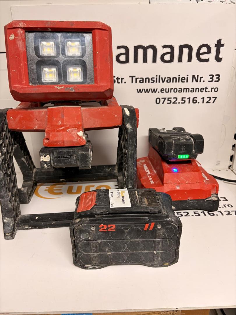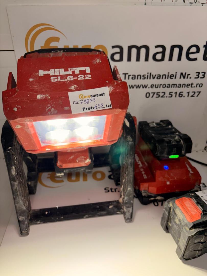 Reflector Hilti LED SL 6-22 pentru construcții cu 3 baterii si incarcator