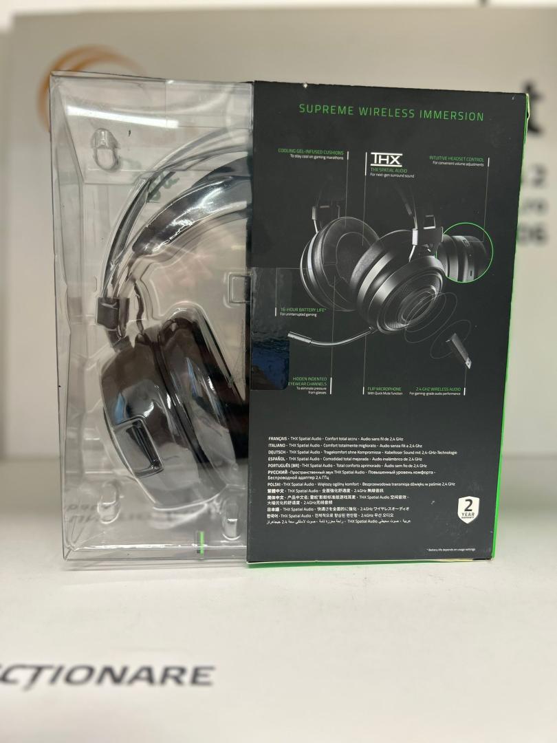 Casti gaming wireless Razer Nari Essential, surround THX, Negru