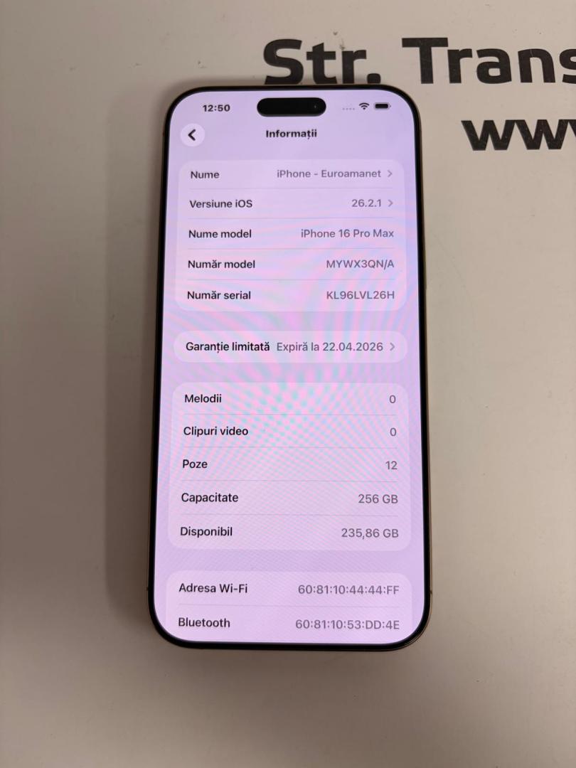 Telefon iPhone 16 Pro Max, 256GB, 5G, Desert Titanium bat.99%