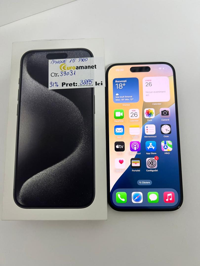 Telefon mobil Apple iPhone 15 Pro, 128GB, 5G, Black Titanium