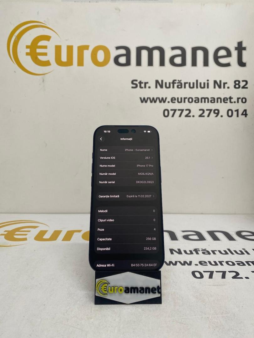 Telefon mobil Apple iPhone 17 Pro, 256GB, 5G, Deep Blue
