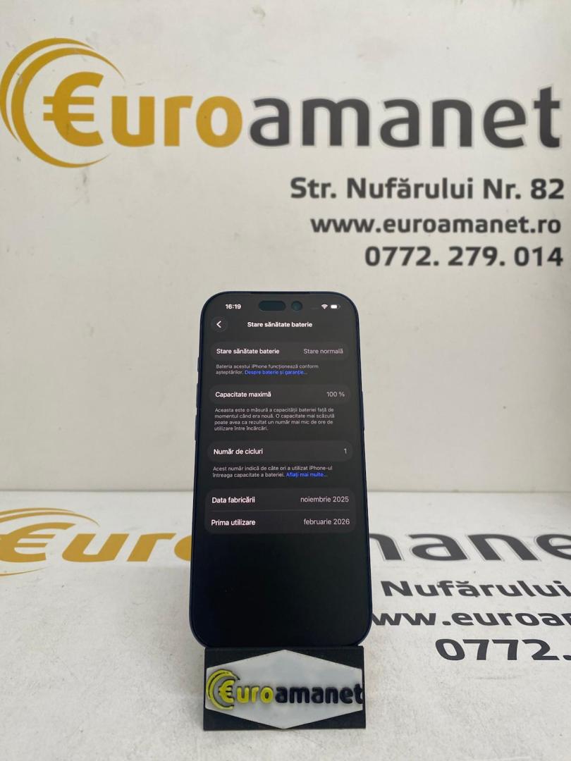 | Functii display | Always-on display True tone Haptic touch 2,000,000:1 contrast ratio HDR display Wide color (P3) Dynamic Island 1000 nit luminozitate maxima (tipic); 1600 nit luminozitate maxima (HDR); 3000 nit luminozitate maxima (in aer liber) Tehnologie ProMotion - rata de refresh adaptiva pana la 120Hz |