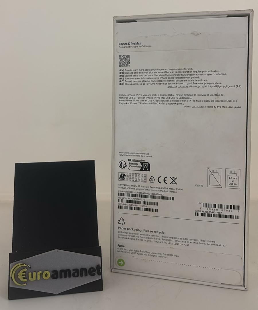 Telefon mobil Apple iPhone 17 Pro Max, 256GB, 5G, Deep Blue Neactivat