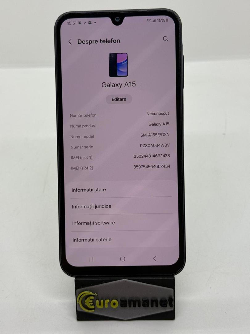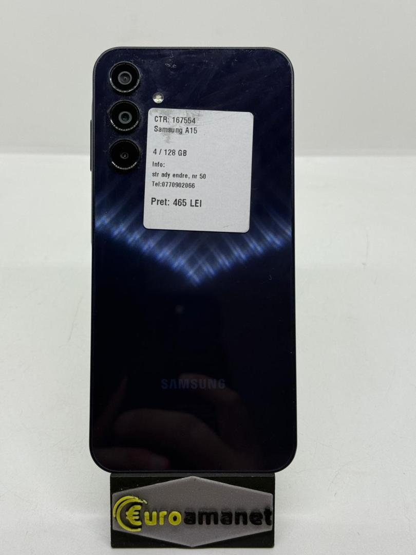 Telefon mobil Samsung Galaxy A15, Dual SIM, 4GB RAM, 128GB, 5G, Blue Black