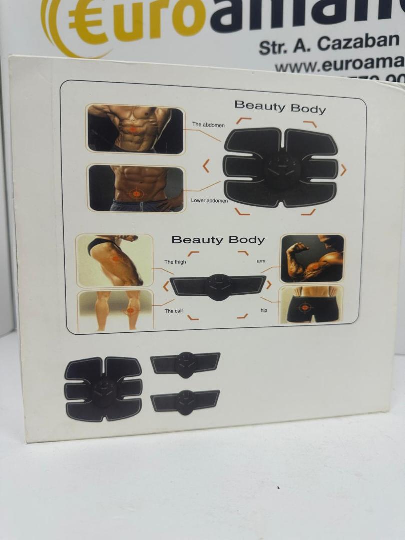 Dispozitiv portabil de tonifiere musculară cu tehnologie EMS (Stimulare Electrică Musculară), conceput pentru a antrena mușchii abdominali, ai brațelor, coapselor, feselor și gambelor fără efort fizic intens. Acționează prin impulsuri electrice care stimulează contracția musculară, imitând exercițiile fizice reale.