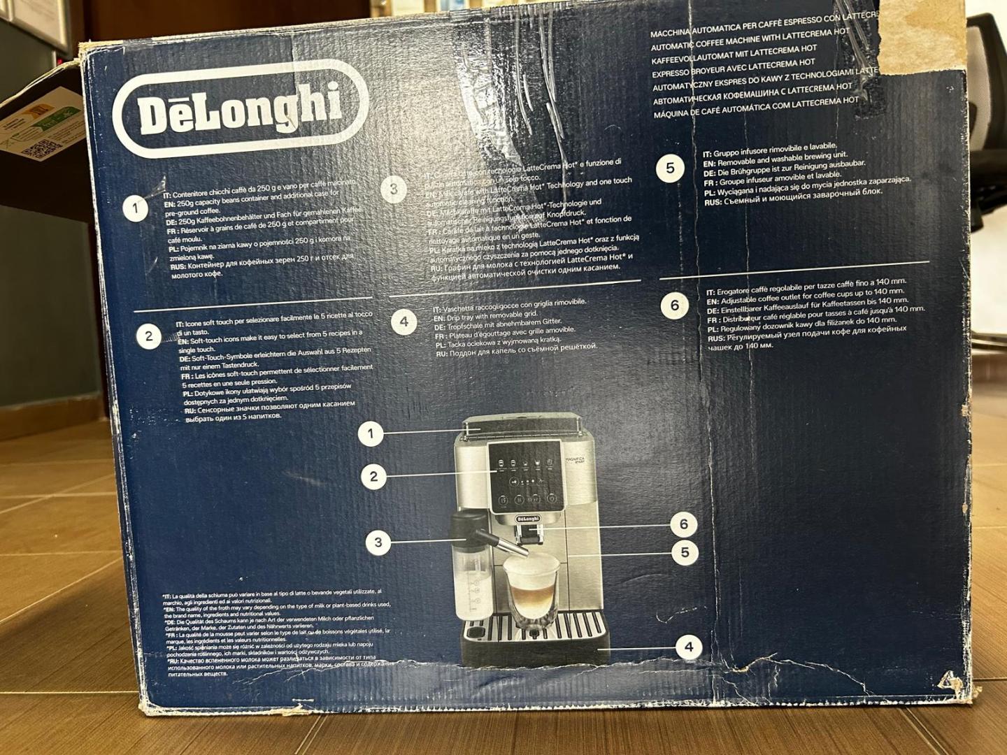 Oprire automata Panou tactil Infuzor detasabil Curatare automata Tava de scurgere detasabila Sistem economisire energie electrica Sistem decalcifiere Setare grad macinare Inaltime ajustabila a duzei de cafea Rasnita Rezervor apa detasabil Rezervor lapte detasabil Setare duritate apa