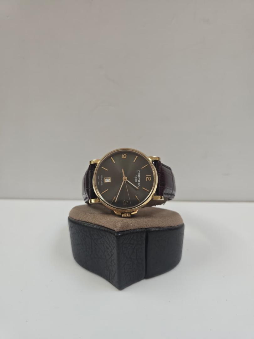 Ceas Certina DS Caimano C017410A, 38mm, piele, rezistent la apa, maro/auriu