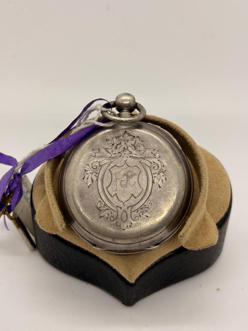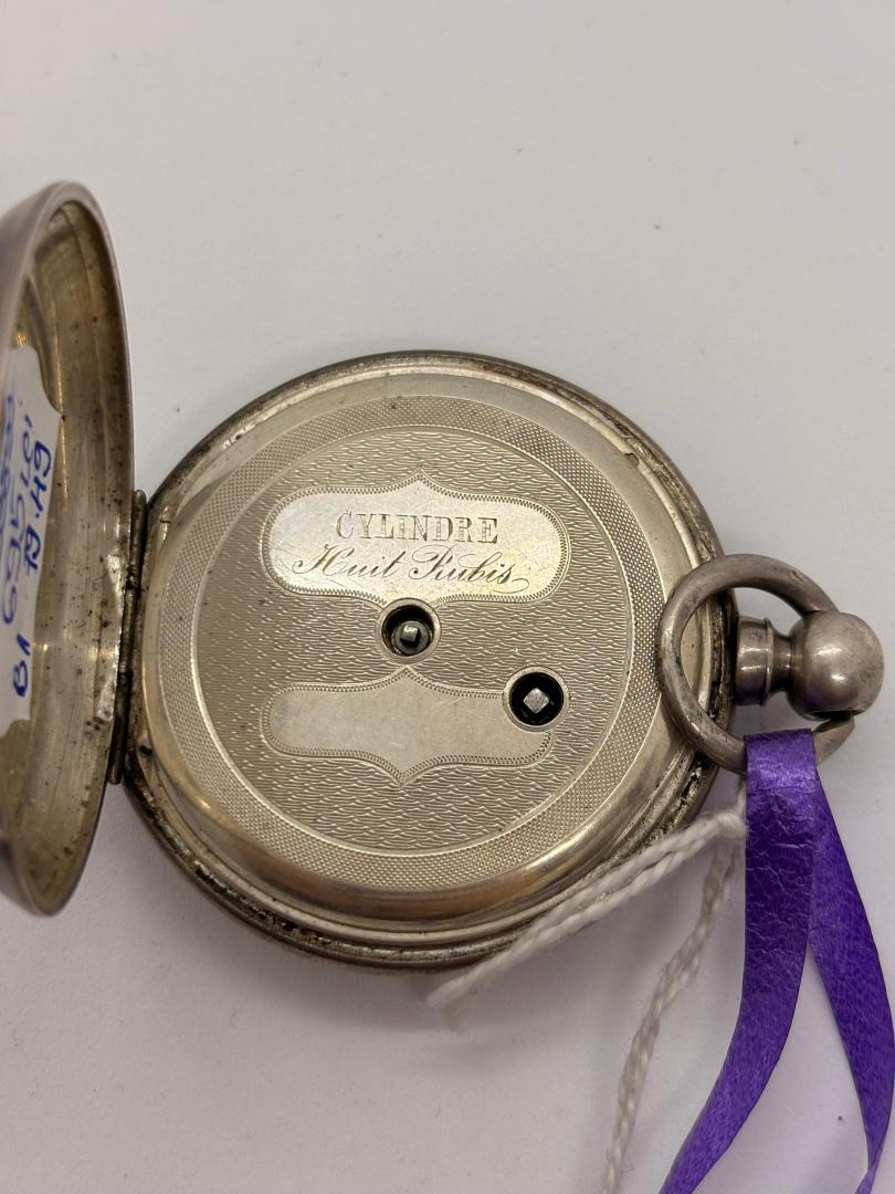 Ceas de buzunar din argint Cylindre Huit Rubis cu 2 cheite