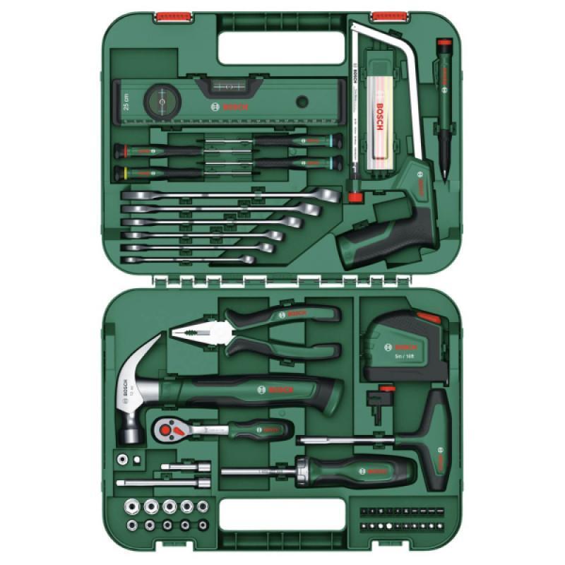 - Include toate uneltele necesare precum fierăstrău, șurubelniță, ciocan, clește și multe altele, asigurând acoperirea completă a oricărei nevoi.