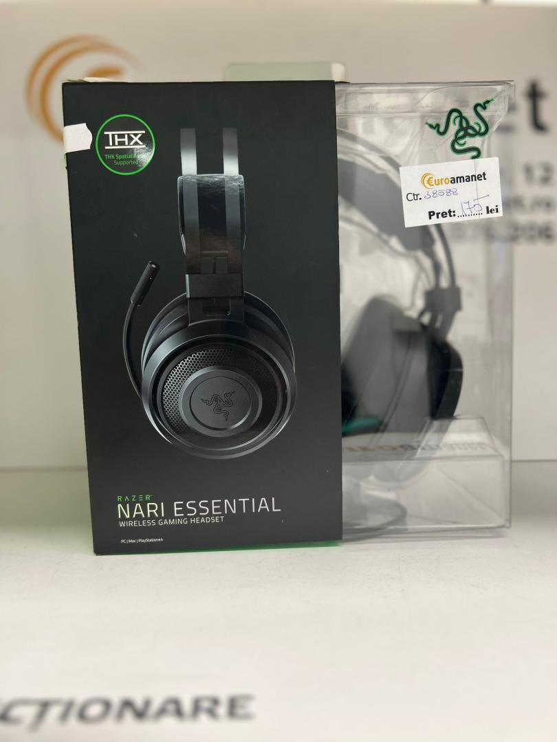 Casti gaming wireless Razer Nari Essential, surround THX, Negru