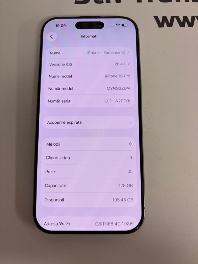 Telefon iPhone 16 Pro, 128GB, 5G, Natural Titanium, bat.90%