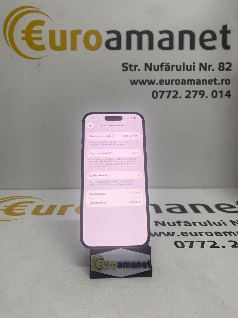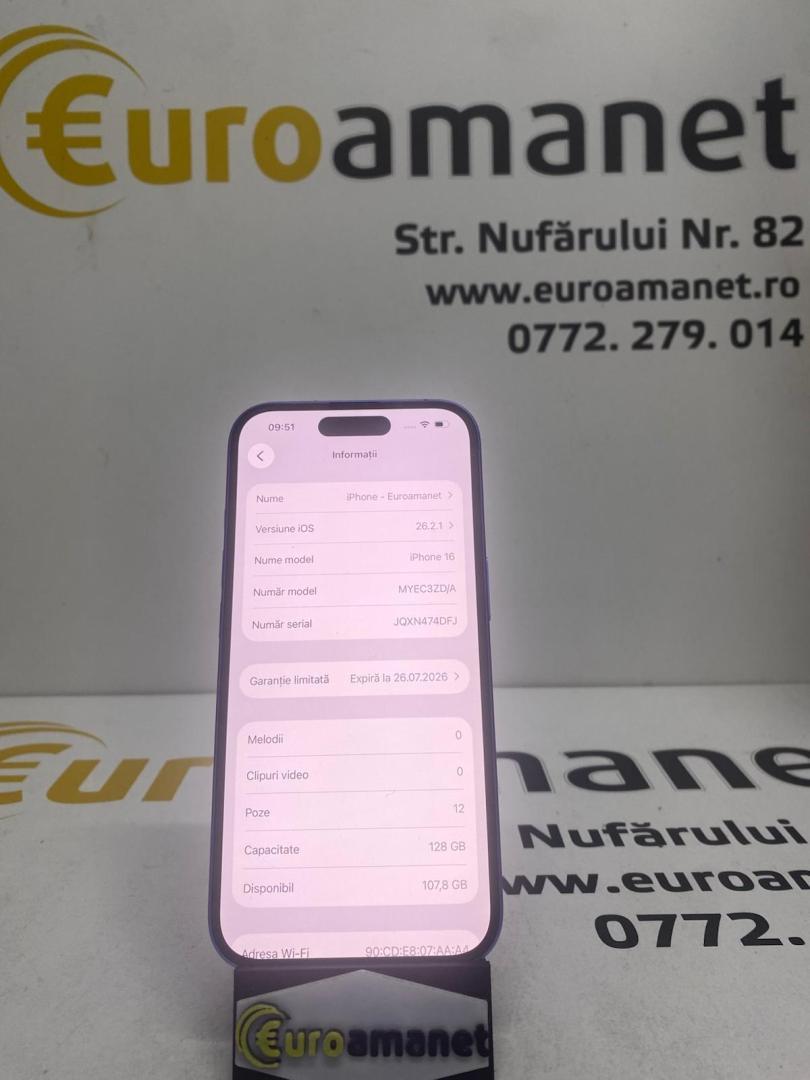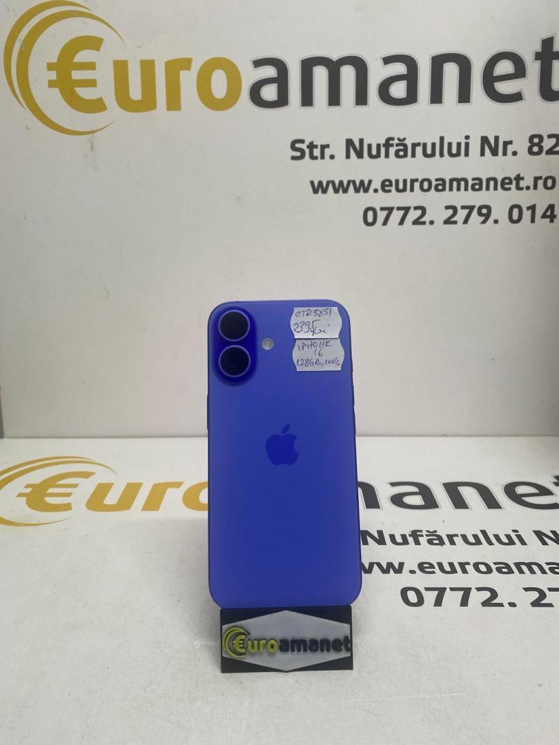 Telefon mobil Apple iPhone 16, 128GB, 5G, baterie 100%