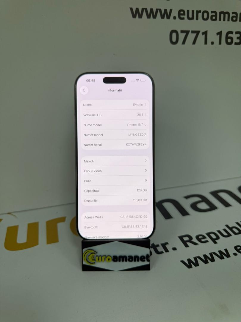 Telefon mobil Apple iPhone 16 Pro, 128 gb, 5G, Natural Titanium 91%baterie