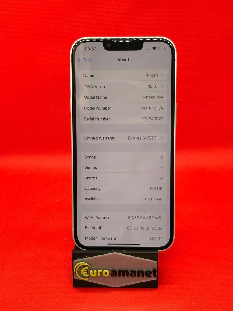 Telefon mobil Apple iPhone 16e, 128GB, Baterie 100%