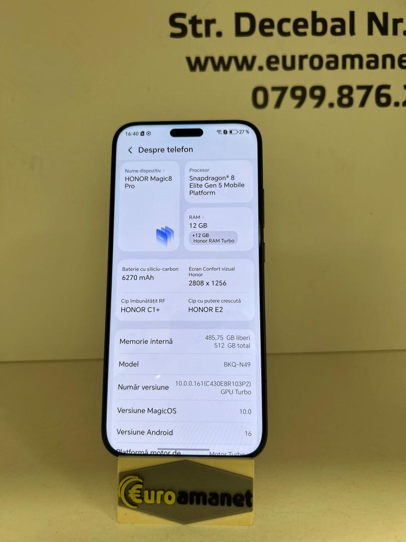 Telefon mobil HONOR Magic 8 Pro, Dual SIM, 12GB RAM, 512GB