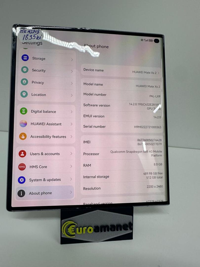 Telefon mobil Huawei Mate Xs 2, 8GB RAM, 512GB, 4G, White