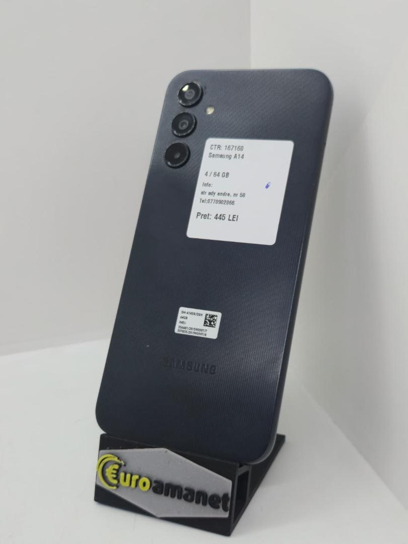 Telefon mobil Samsung Galaxy A14, Dual SIM, 4GB RAM, 64GB, 4G, Black