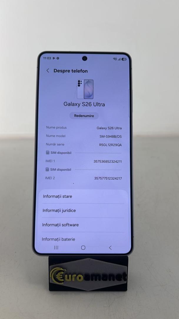 Telefon mobil Samsung Galaxy S26 Ultra, Dual SIM, 12GB RAM, 512GB, 5G,